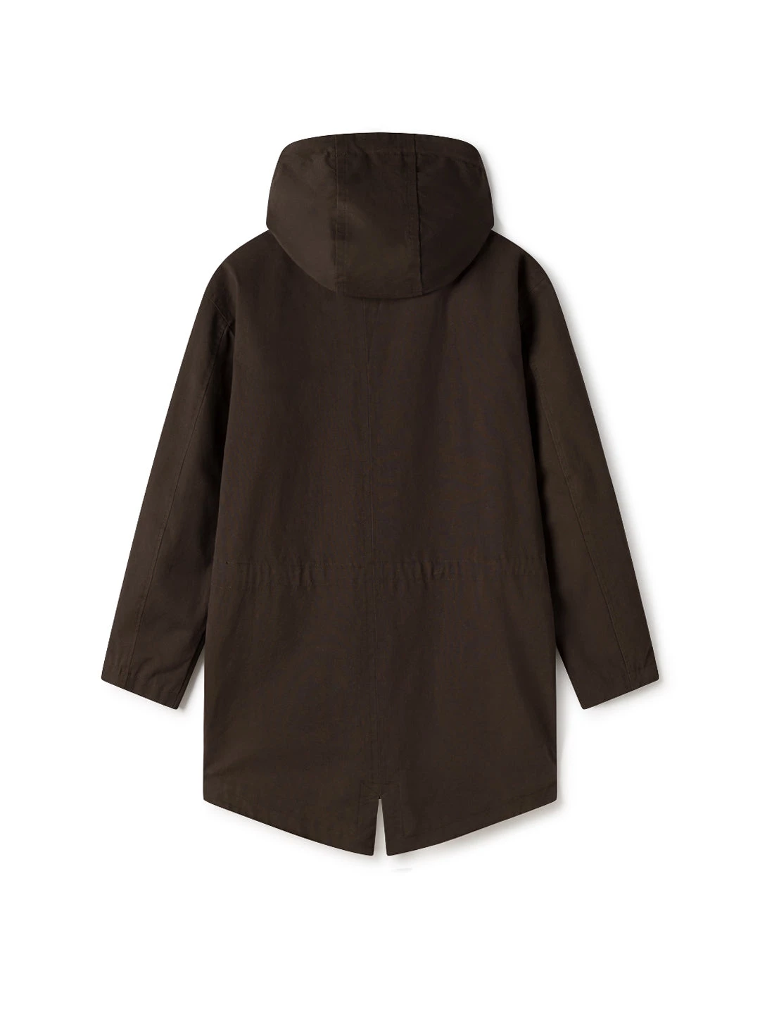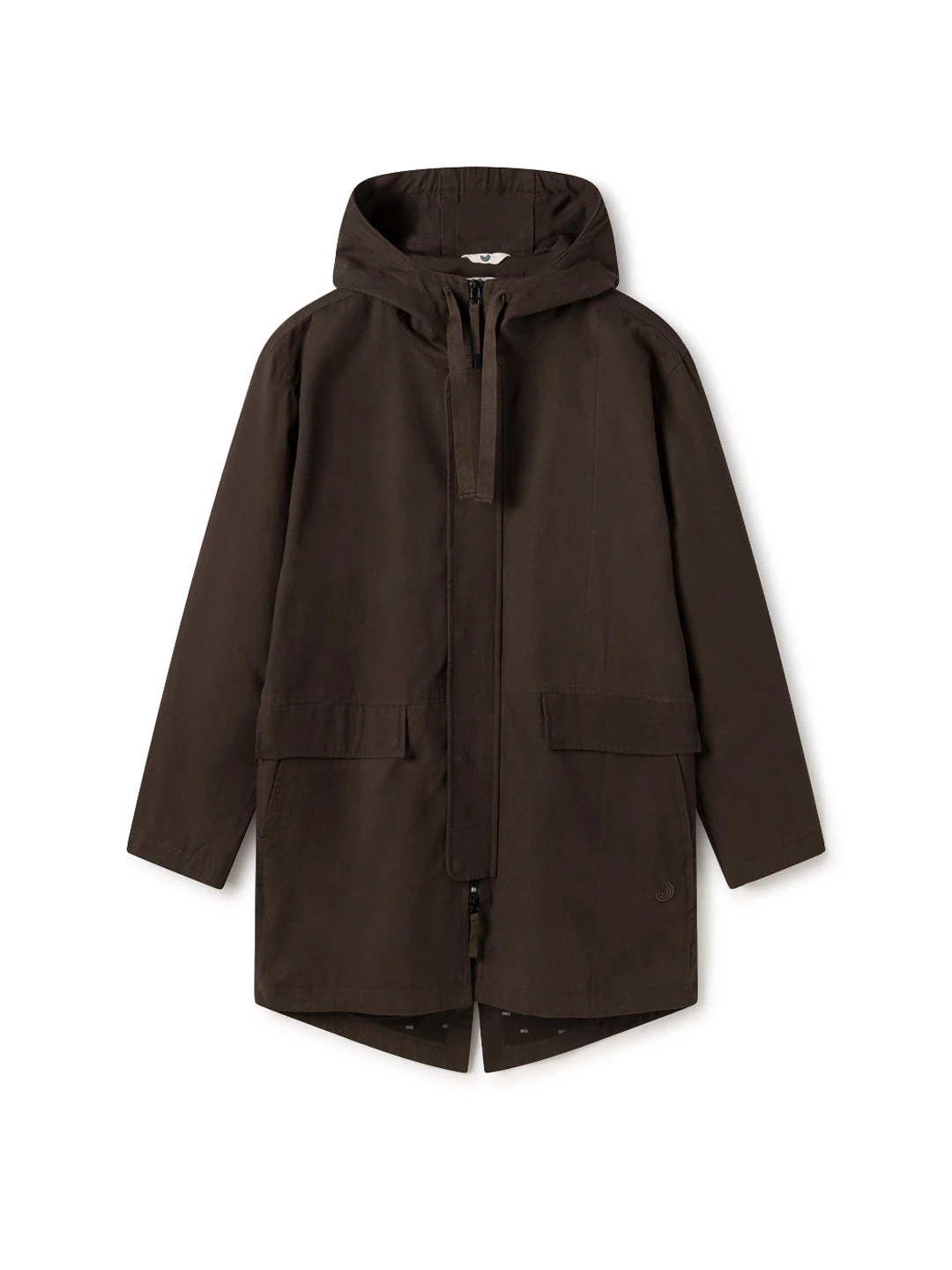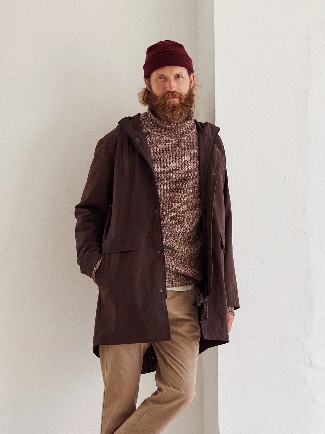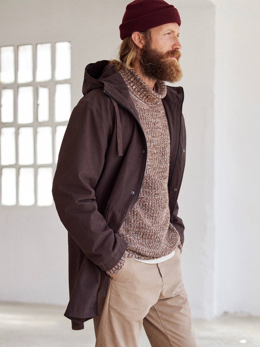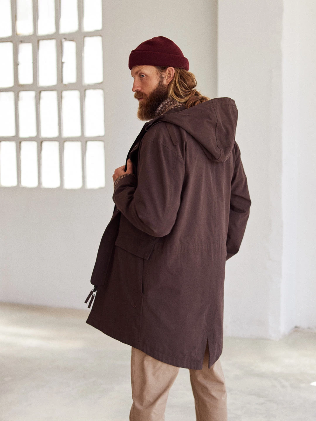 We are excited to bring the Naval jacket to our new collection, made of a resilient fabric and lined for greater comfort. The parka is designed with a frontal placket which covers the zip, a hood with adjusters, a raised collar and an interior drawstring to adjust the waist for a defined look. With 6 pockets in total, a regular fit and thigh-length cut – the Naval has all bases covered.