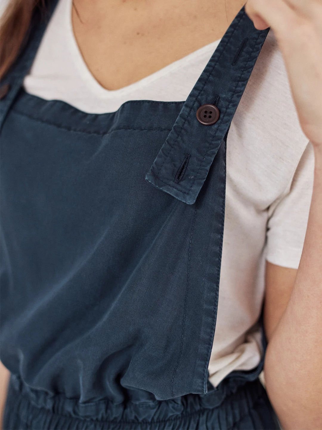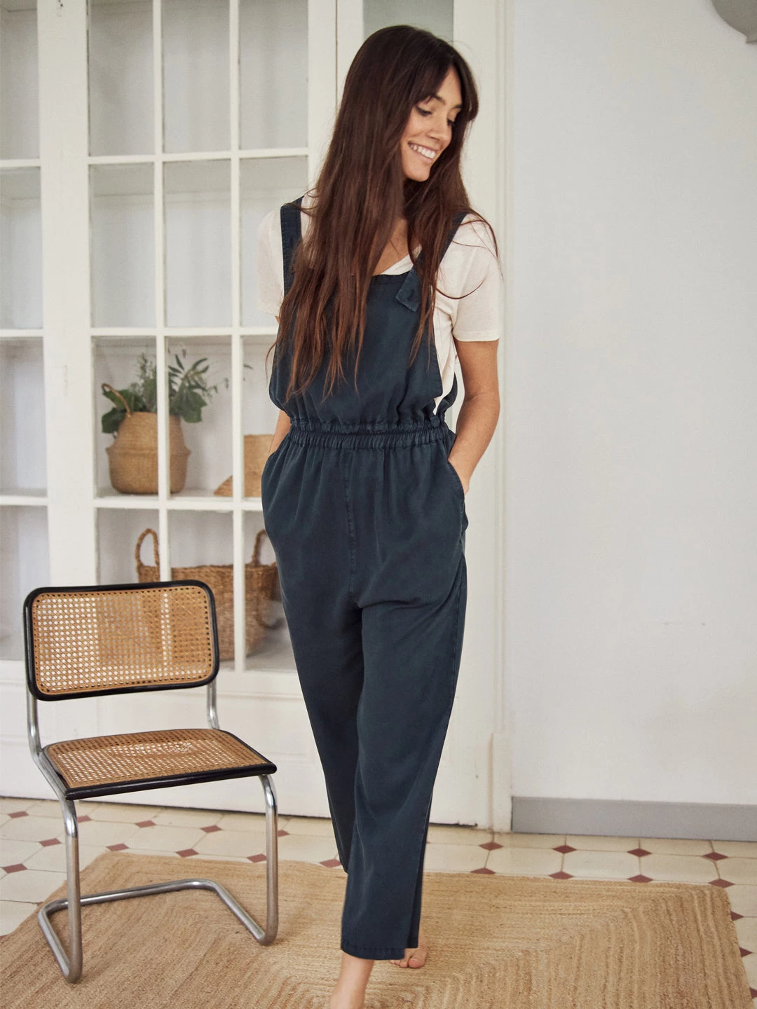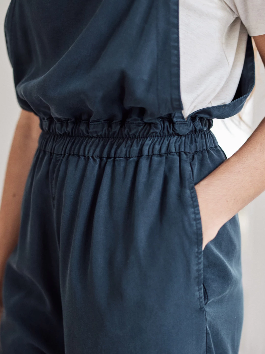 Sustainable dungarees: the Hornos comes with naturally sourced corozo buttons, 3 buttonholes on the straps, side pockets and an elasticated waistband.