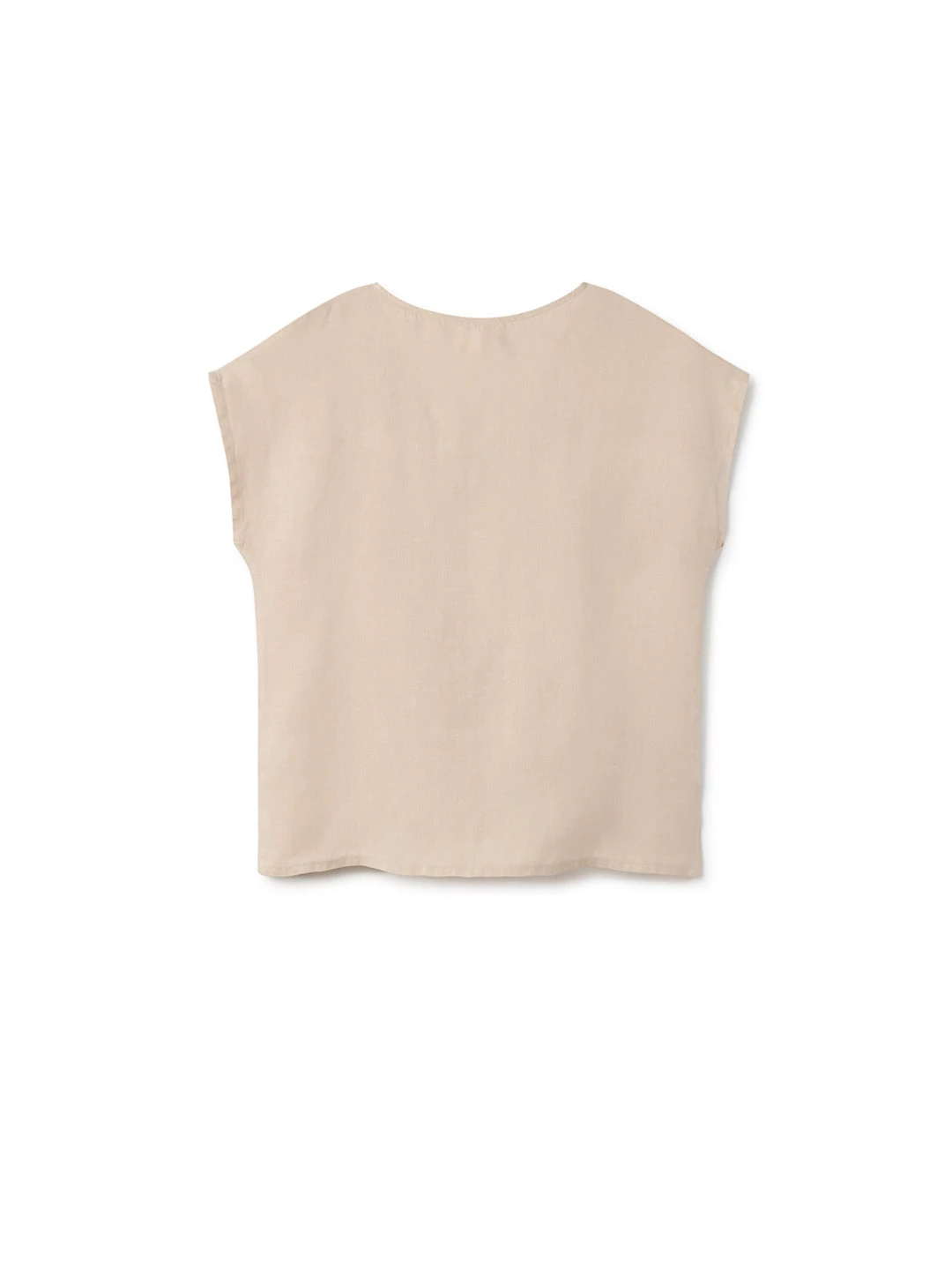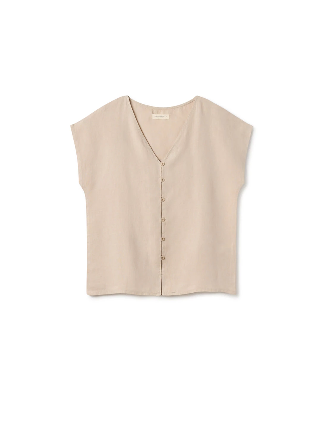 Embrace the sea breeze with the Norderney shirt. A thin and lightweight garment with naturally sourced fabric lined buttons, very small sleeves and a V-neckline.Â