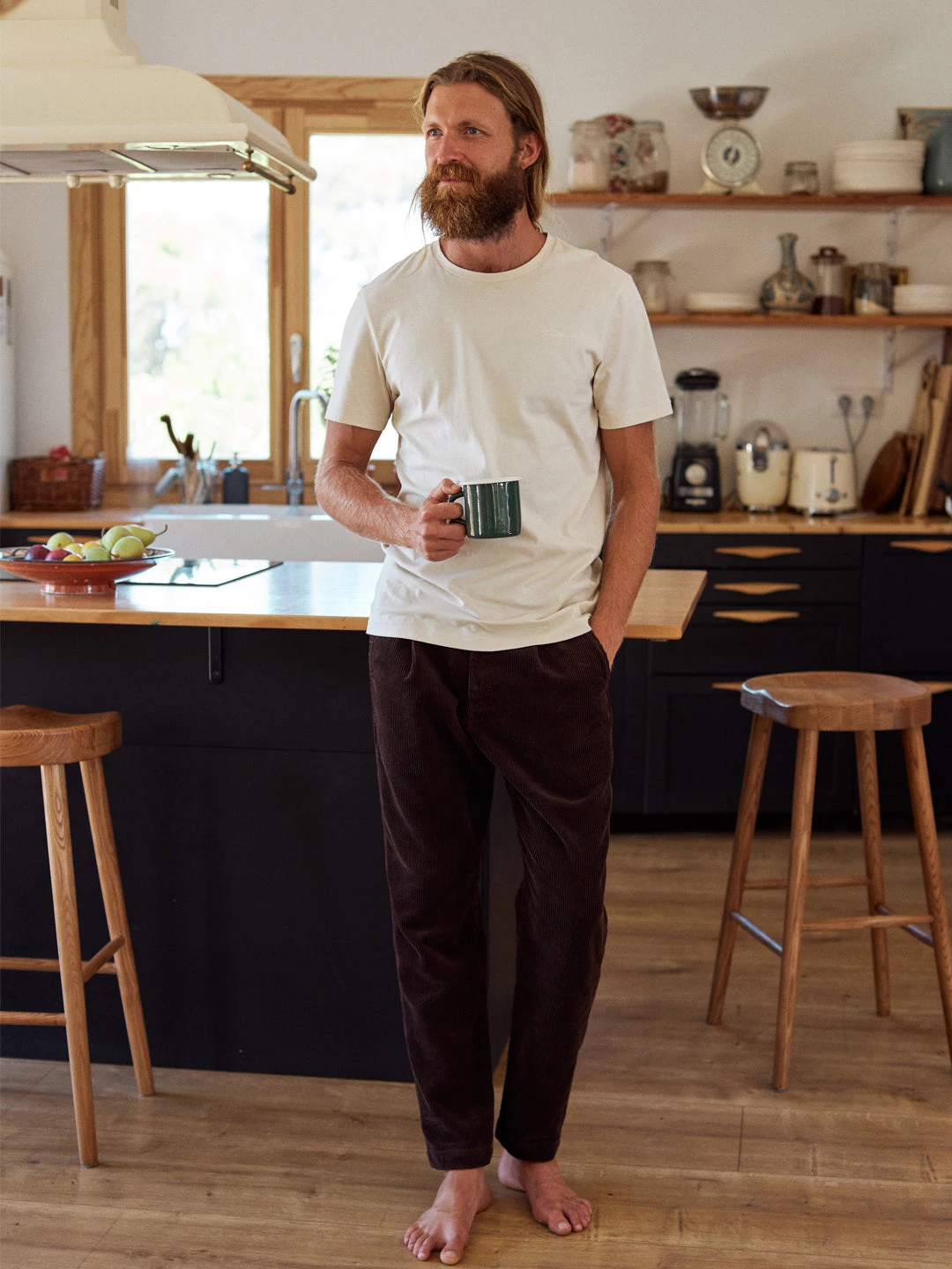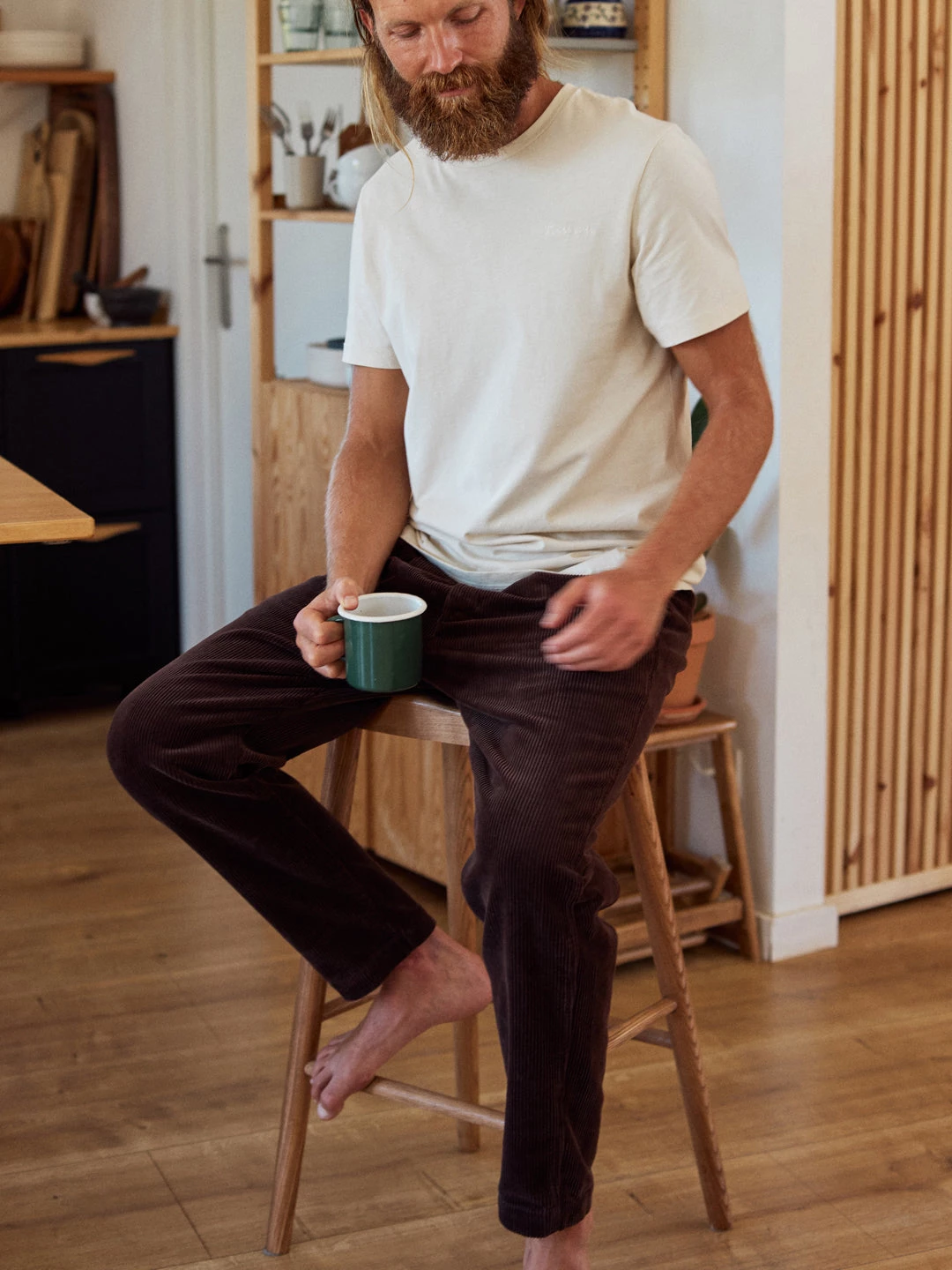 We love that corduroy has become a fashion staple so we can bring our own sustainable twist to the trend, hence the Paramushir trousers. They’re designed with a fitted waistband, pleats, naturally sourced corozo buttons and 4 pockets in total – with wave detailing on the back one. The pants have a straight cut and fall around the ankles.