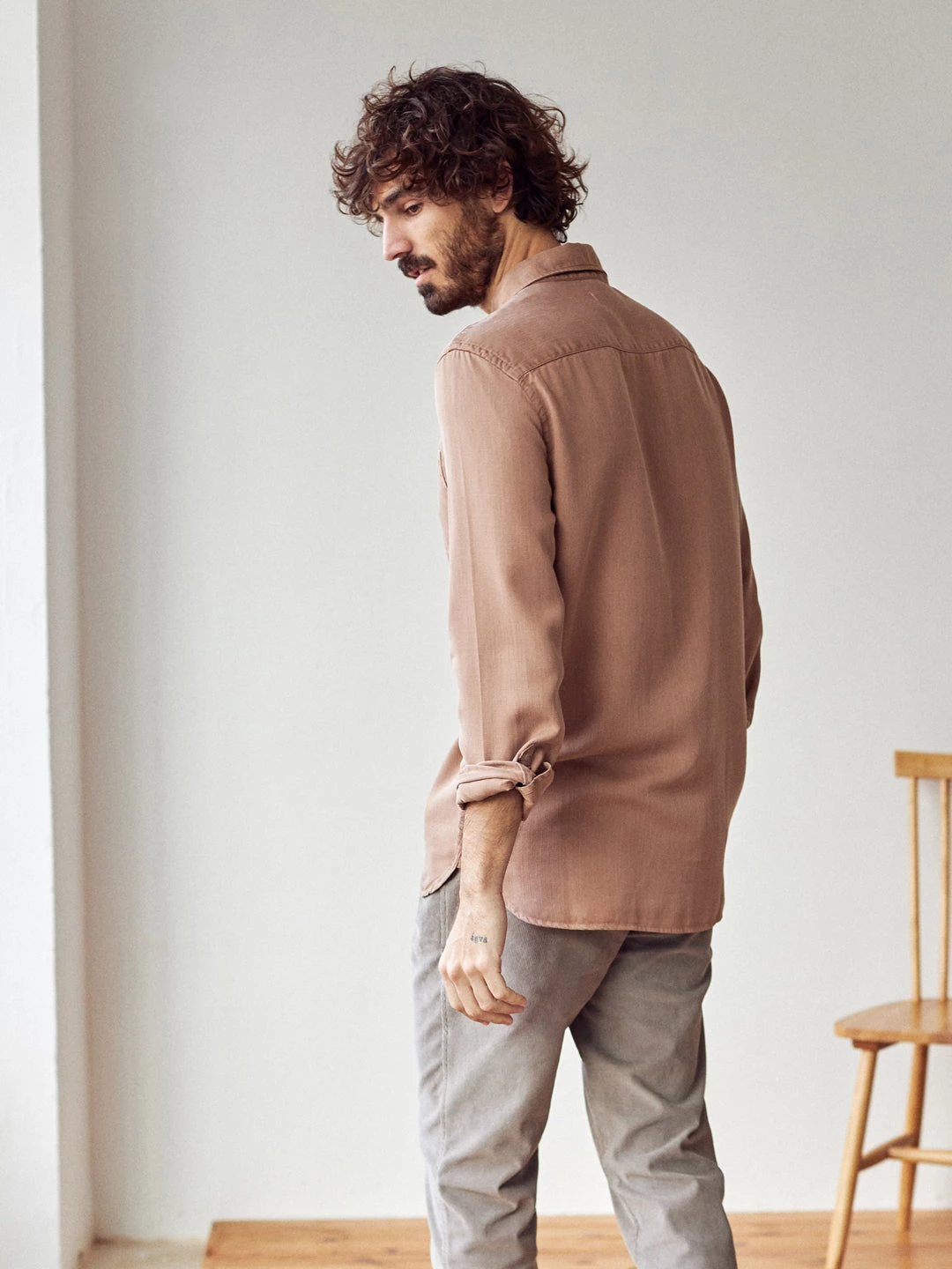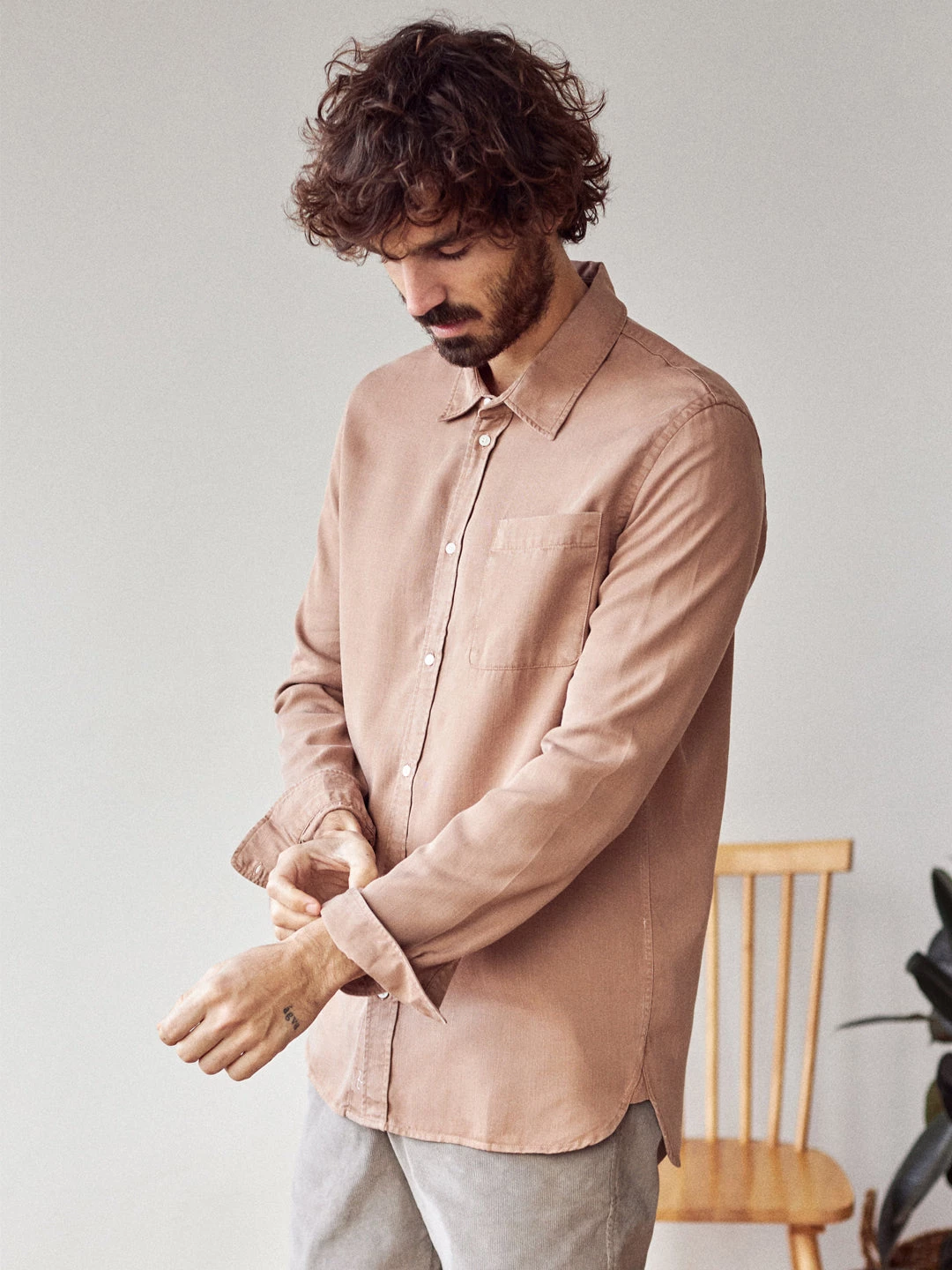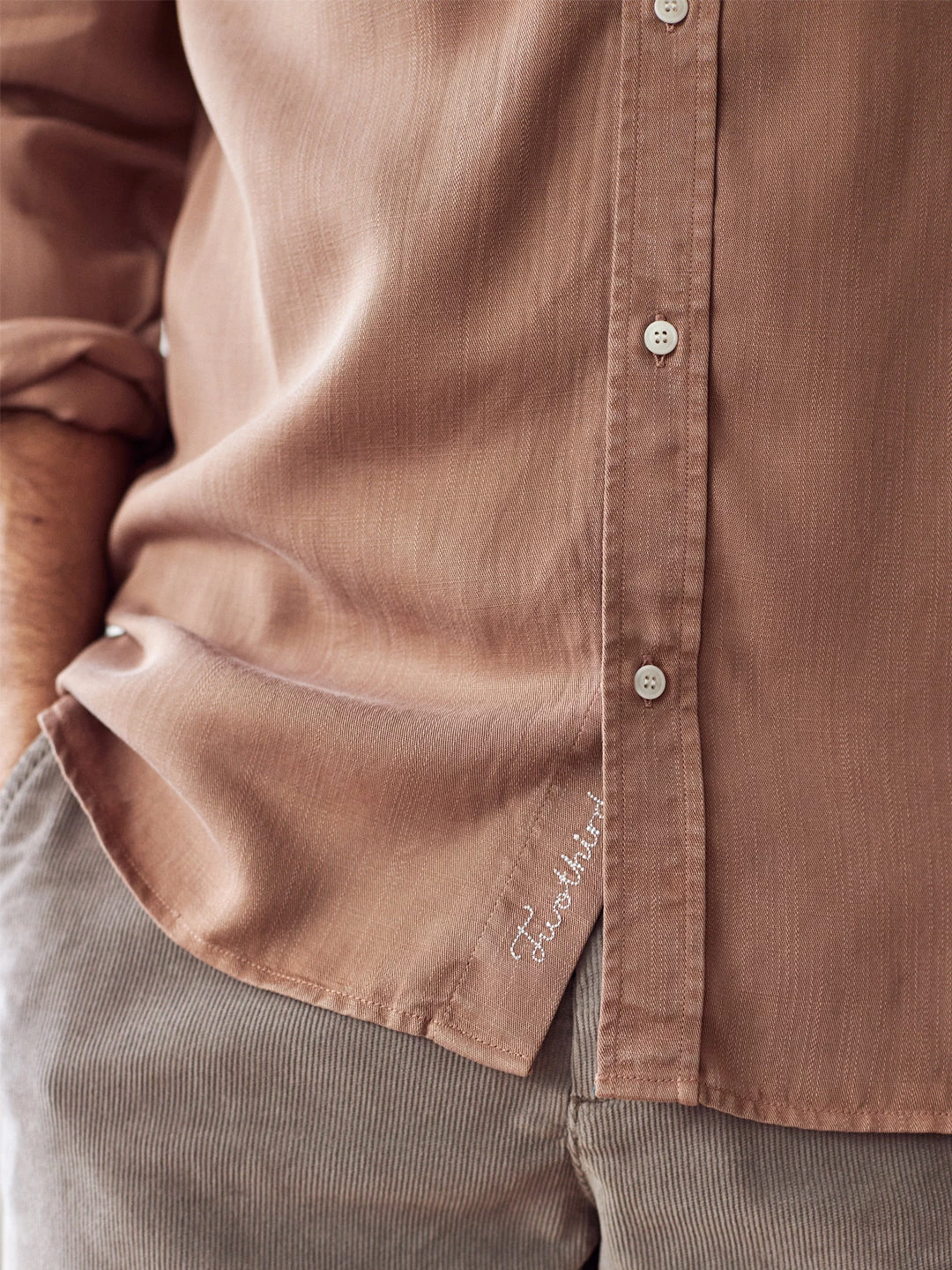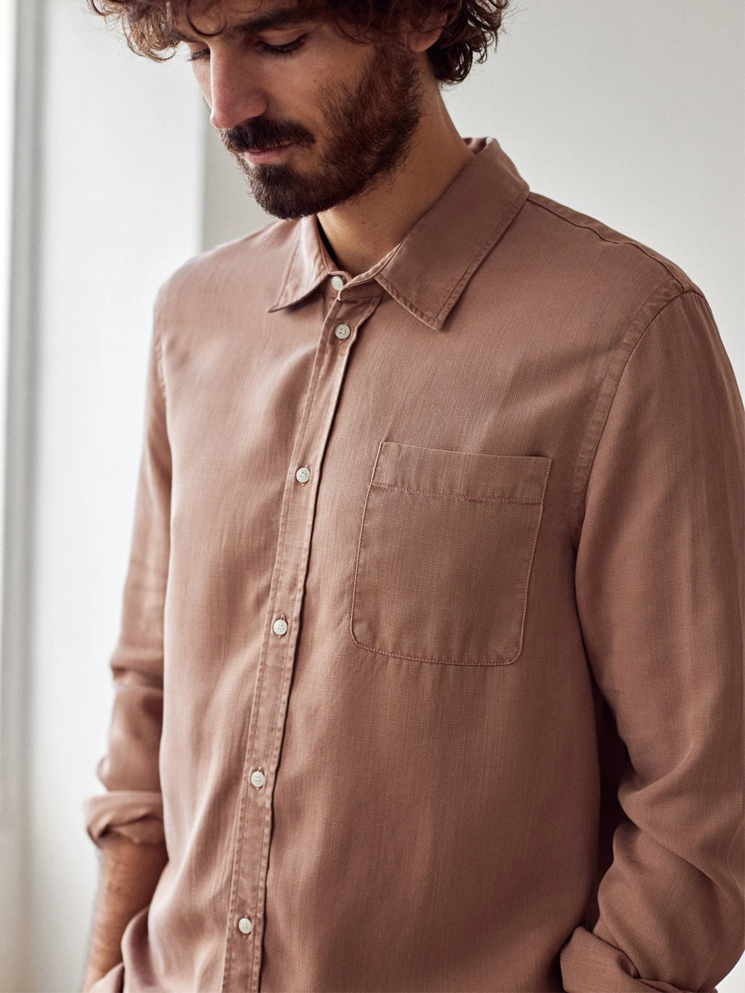 A classic style shirt, the Rosella. Designed with a stitched pocket on the chest, regular collar, naturally sourced corozo button and side cuts – making the back slightly longer. It comes in a regular fit and hip-length cut.