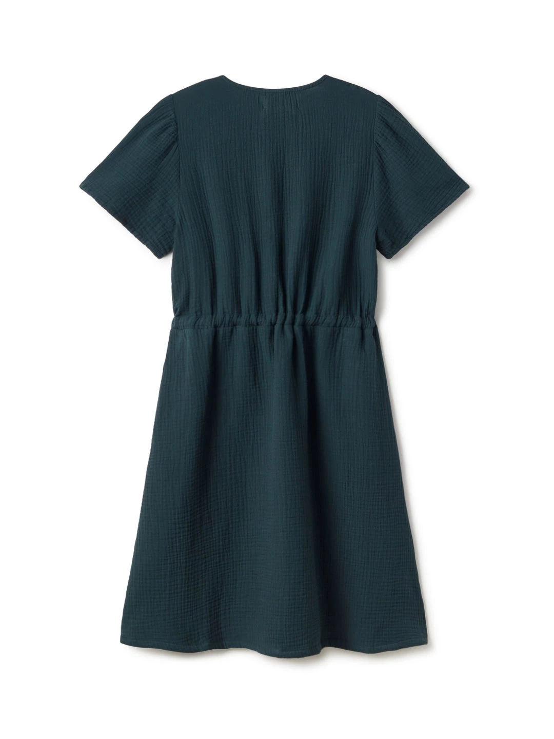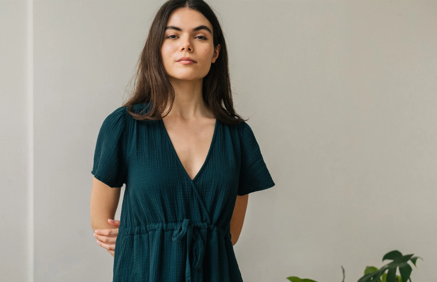 We are excited to bring the Sabinal to our latest collection: a soft and flowy dress – perfect for the warmer seasons. Designed with a crossed triangular opened neckline, a cord adjustable waist and loose sleeves with gathered shoulders. It comes in a loose fit and falls above the knees.