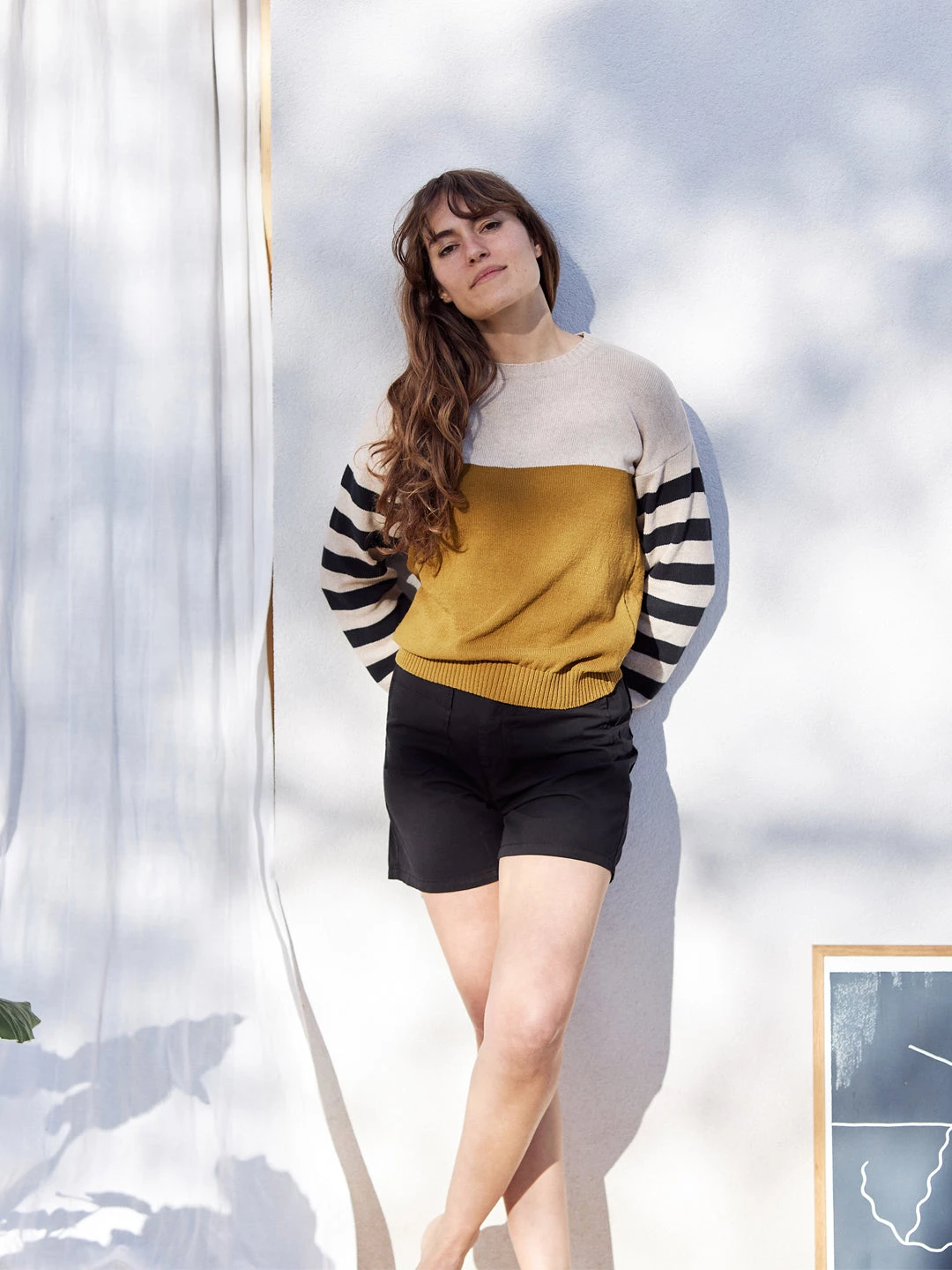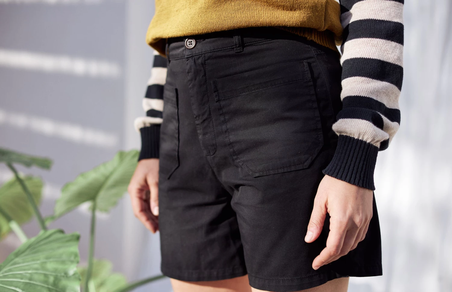 We bring you the Guanaja shorts to enjoy the warmth in comfort and style. Designed with a naturally sourced corozo button, 4 big pockets and turn-up hems. They have a fitted cut around the waist but widen up around the legs.