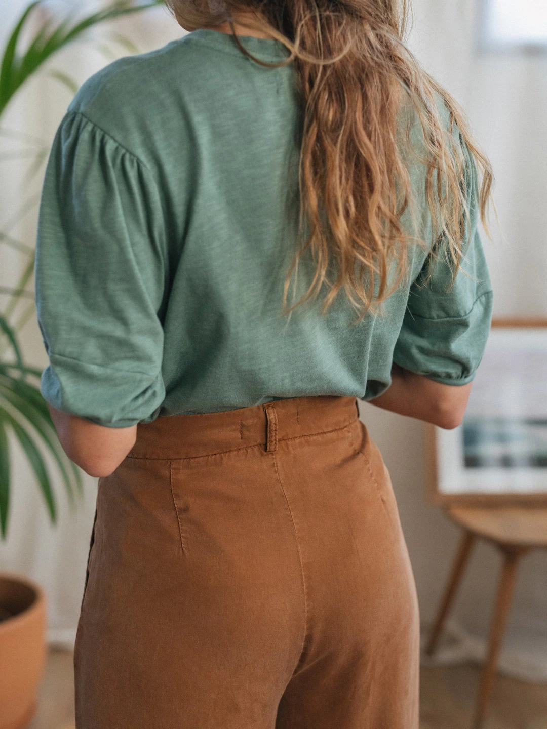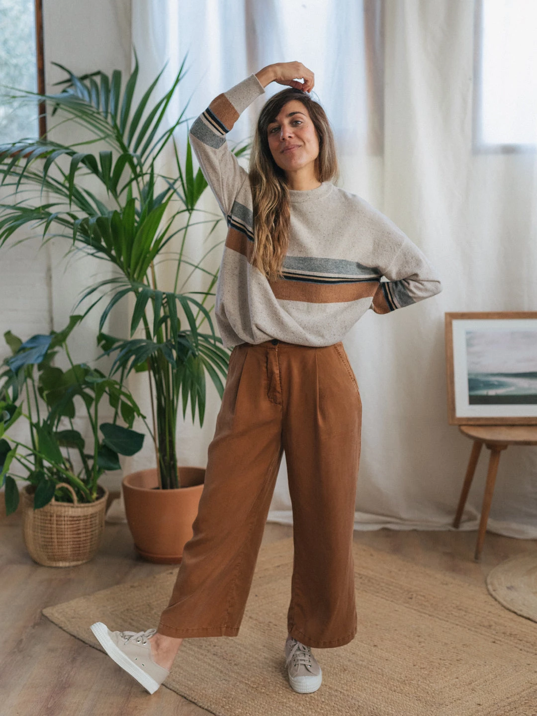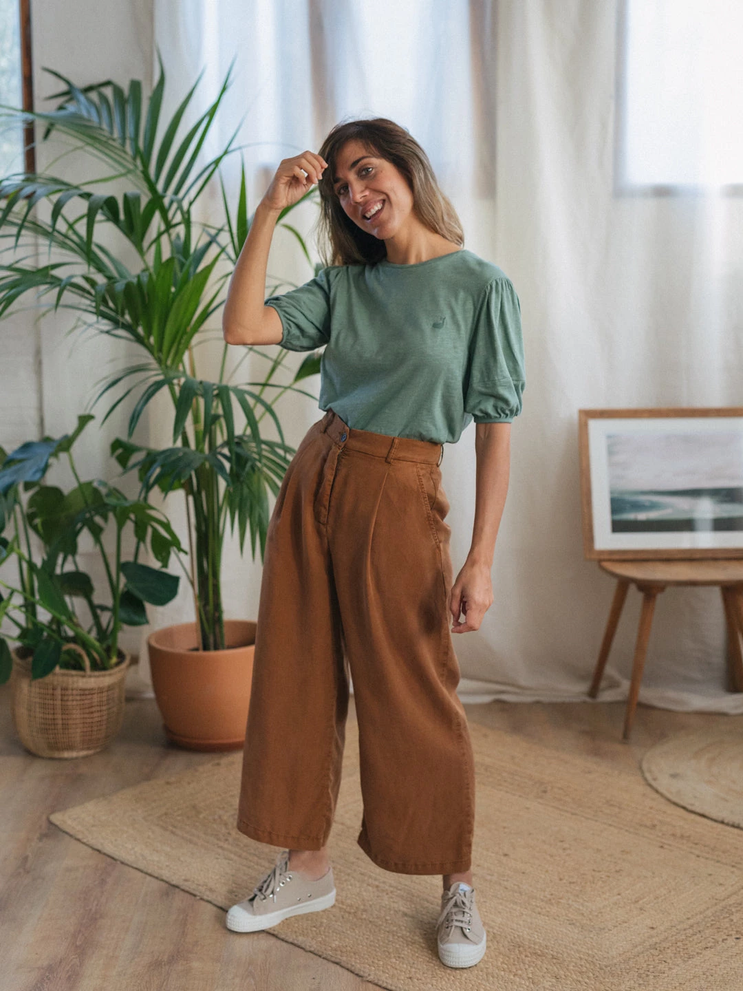 Our Hashima are a TWOTHIRDS classic! They have a high-waisted cut, in a regular fit that gets wider at the legs and is cropped at the ankle. Also featuring a single naturally sourced corozo button. These super soft culottes are a great asset for sustainable wardrobes, which explains their popularity.