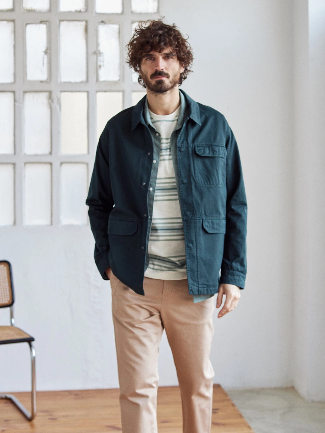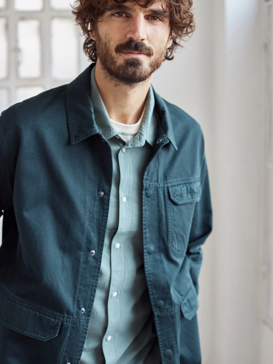 A wonderfully light garment, bringing style alongside sustainability to your wardrobe. It’s the finest jacket to wear as an extra layer, opened on top of a shirt with denim jeans for a great everyday look.