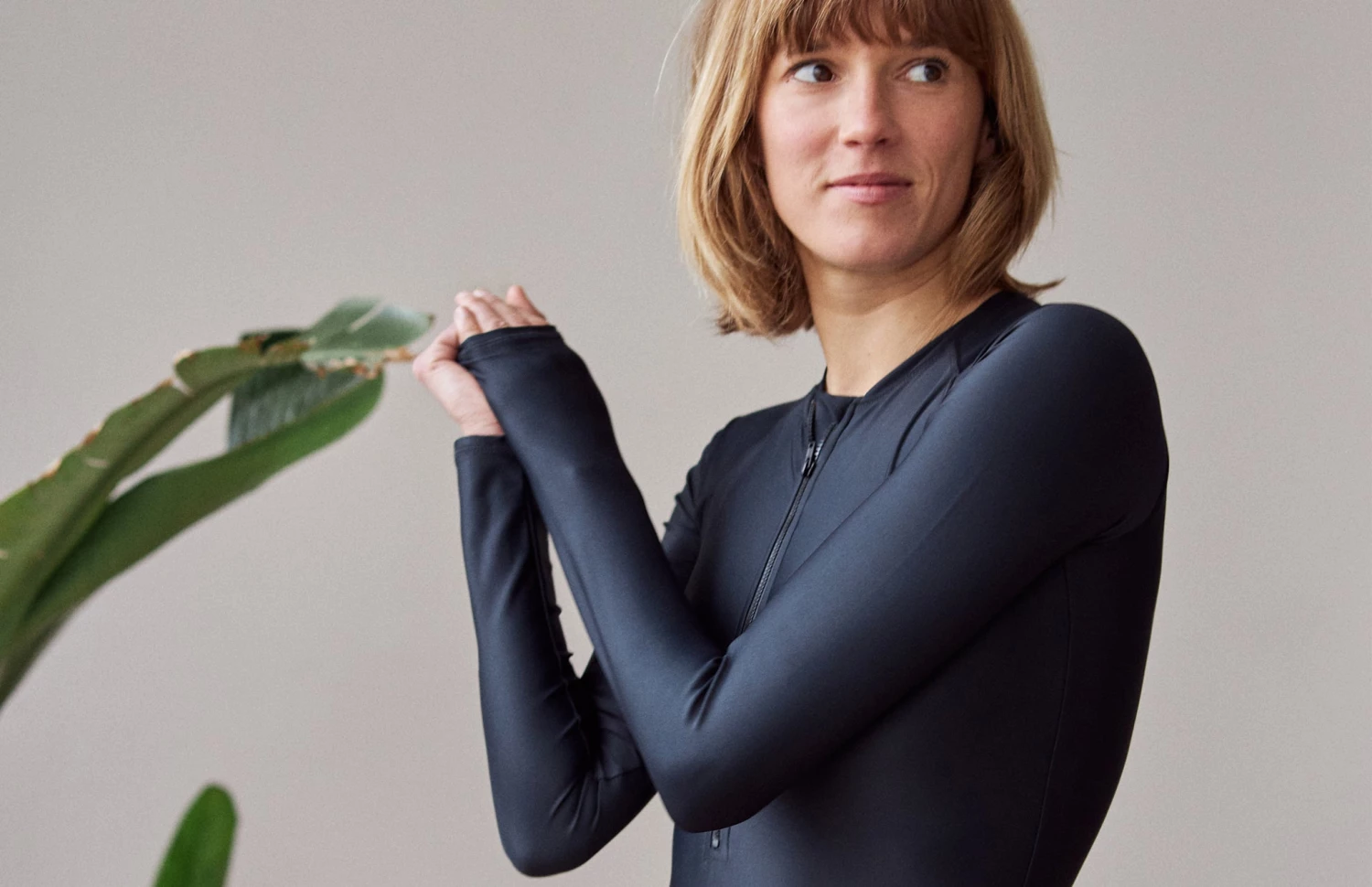 Soak up the sea and sun with the Trinket swimsuit. An elegantly designed black one-piece with a front zipper and stretchy fabric made of recycled plastics, plus elastane for a touch of elasticity. This style offers full coverage and is made with flat seams to enable greater flexibility. Perfect for surfers.